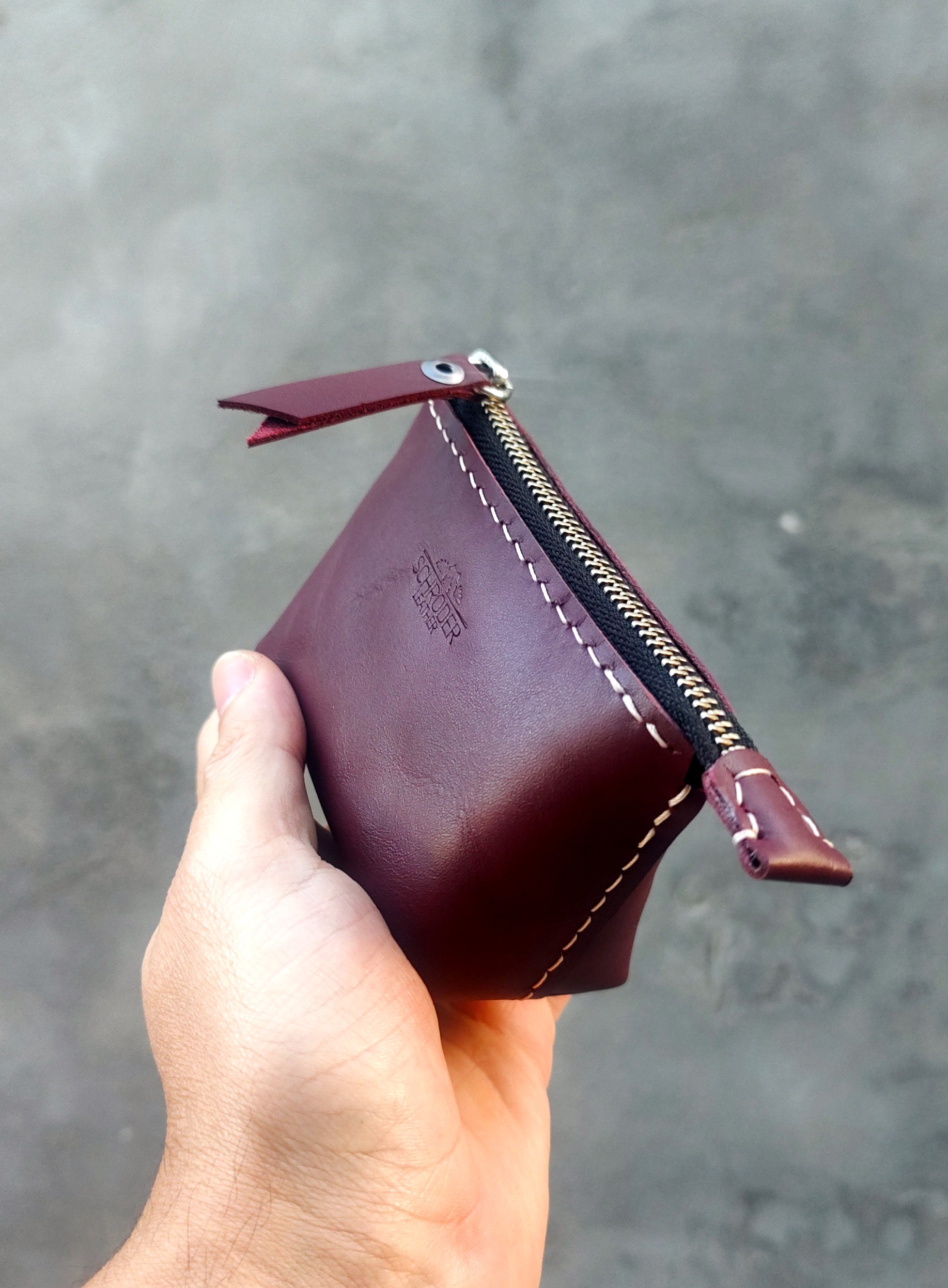 O couro usado na confecção é de excelente qualidade na cor vinho, abertura principal com fecho de zíper.