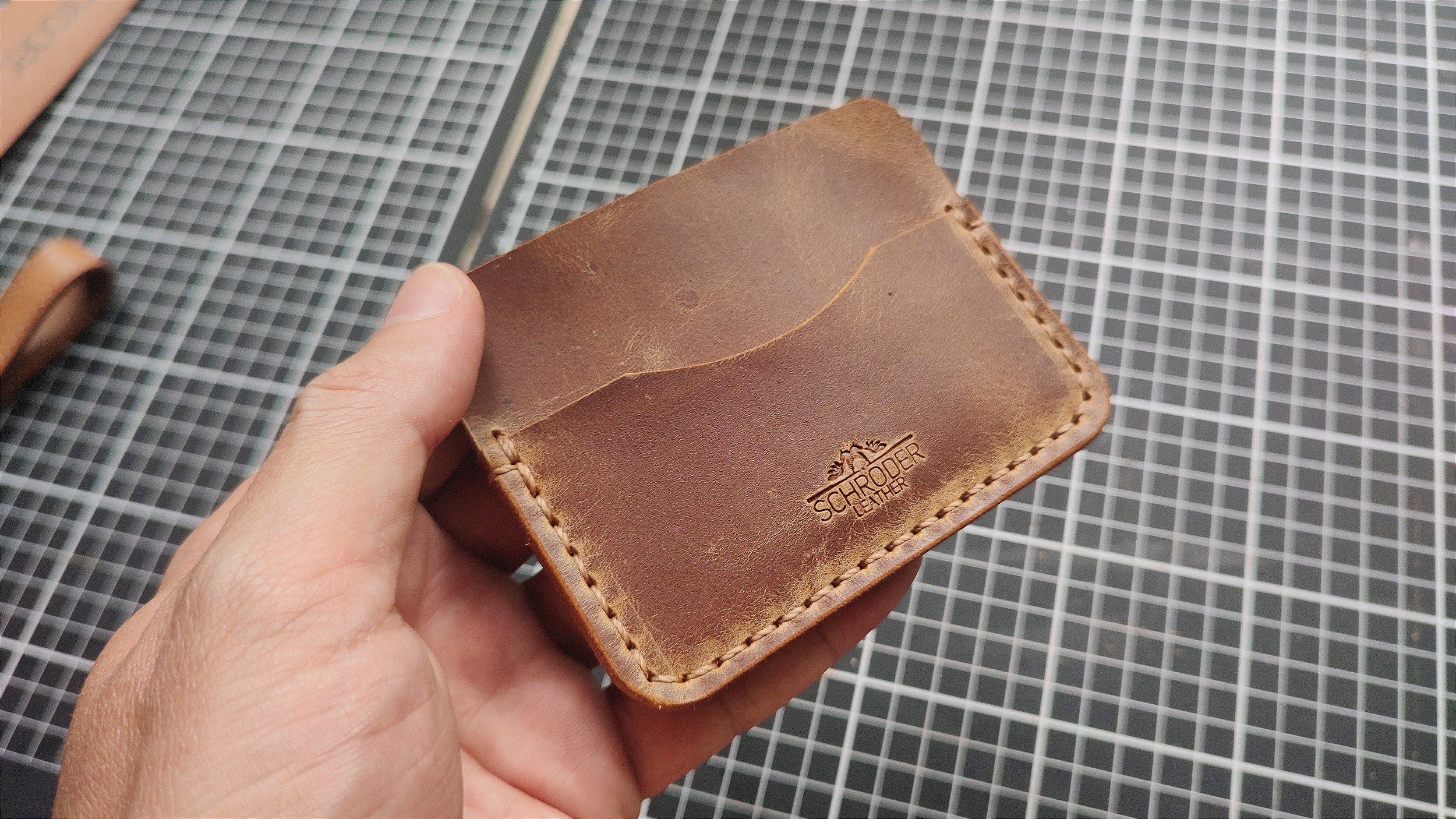 Carteira slim em couro Parafinado castanho, modelo compacto ideal para para CNH, cartões e cédulas dobradas, perfeita para quem carrega apenas o nescessário.