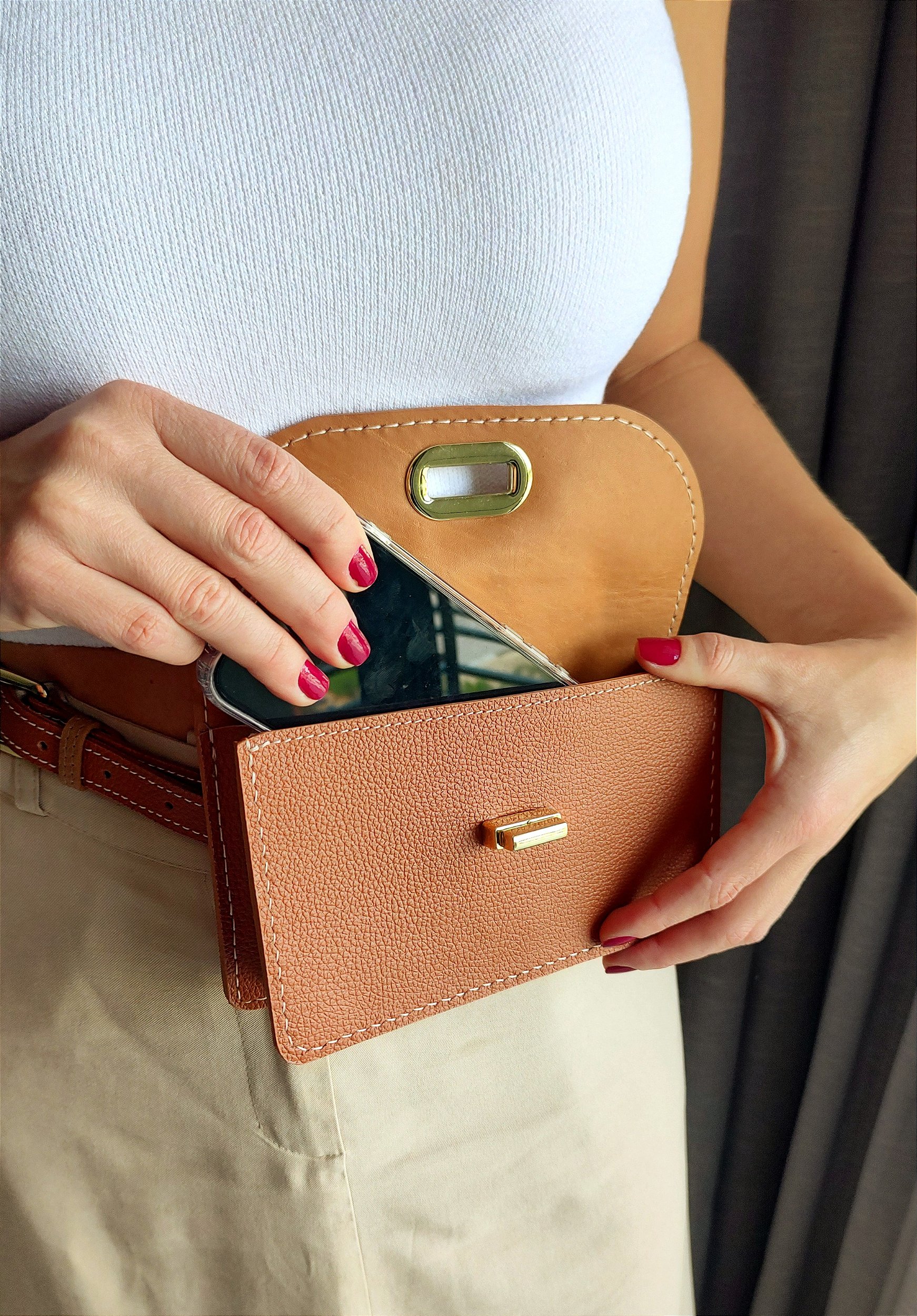 Bag Phone Schroder com certeza é uma bolsa super coringa com design sofisticado além é claro da praticidade, pois como ela é acoplada ao cinto permite que suas mãos fiquem livres gerando mais desenvoltura e liberdade ao seus movimentos.