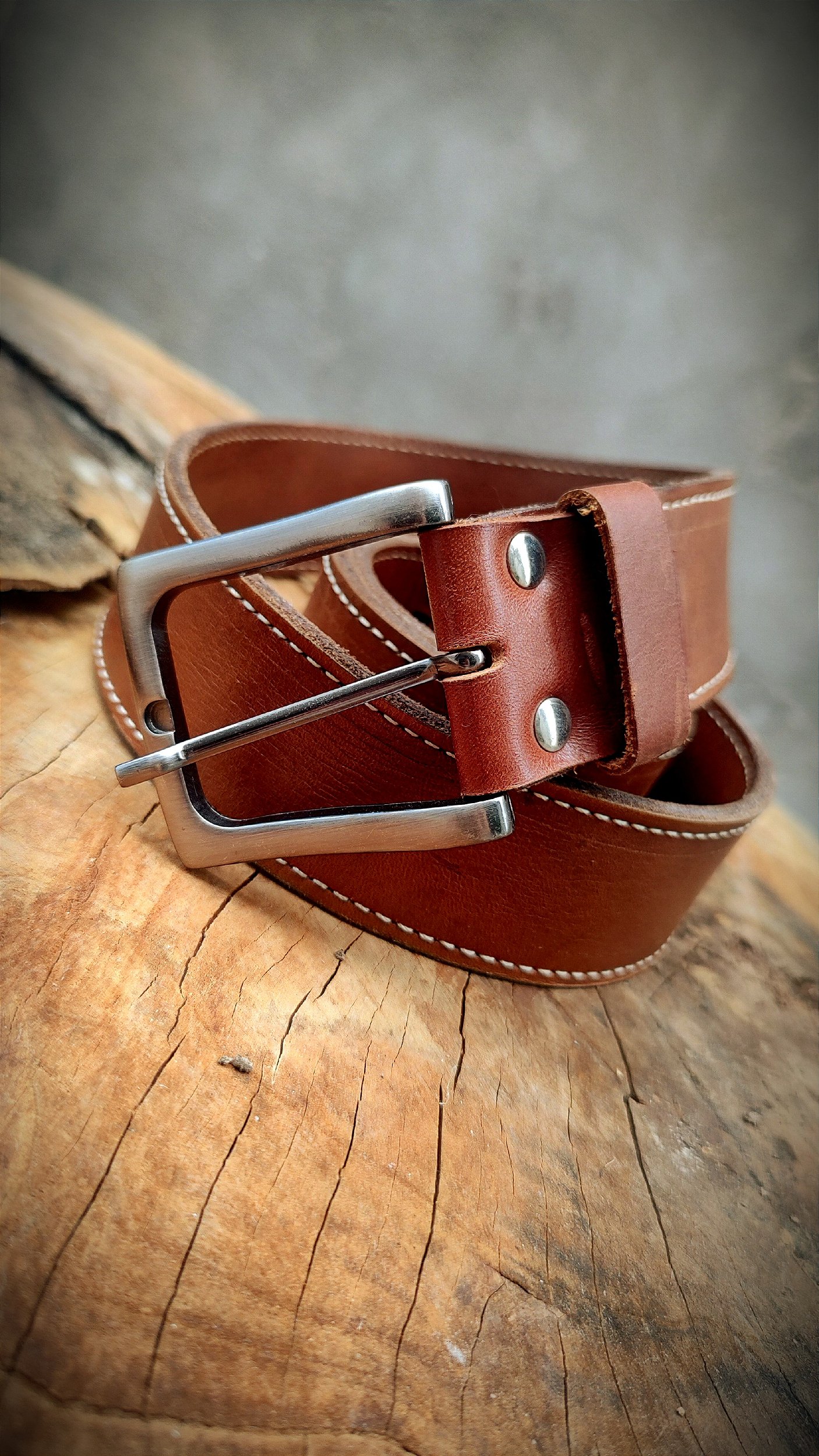 Cinto Esportivo masculino em couro na cor telha, confeccionado artesanalmente com largura de 4 cm