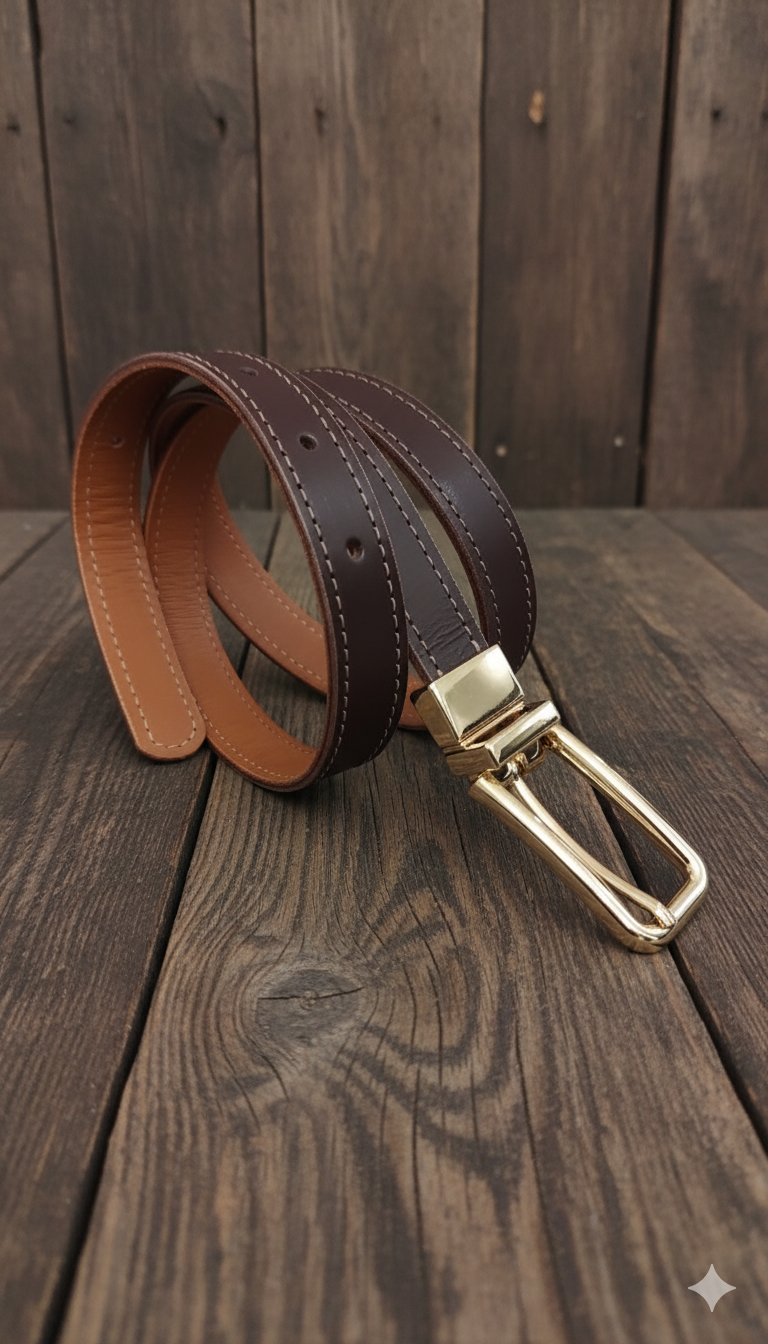 Agora vc pode combinar diferentes looks com o cinto artesanal reversível em couro SCHRODER, modelo fino 20mm com fivela dourada com reboque de excelente qualidade. Cinto elegante 2 em 1